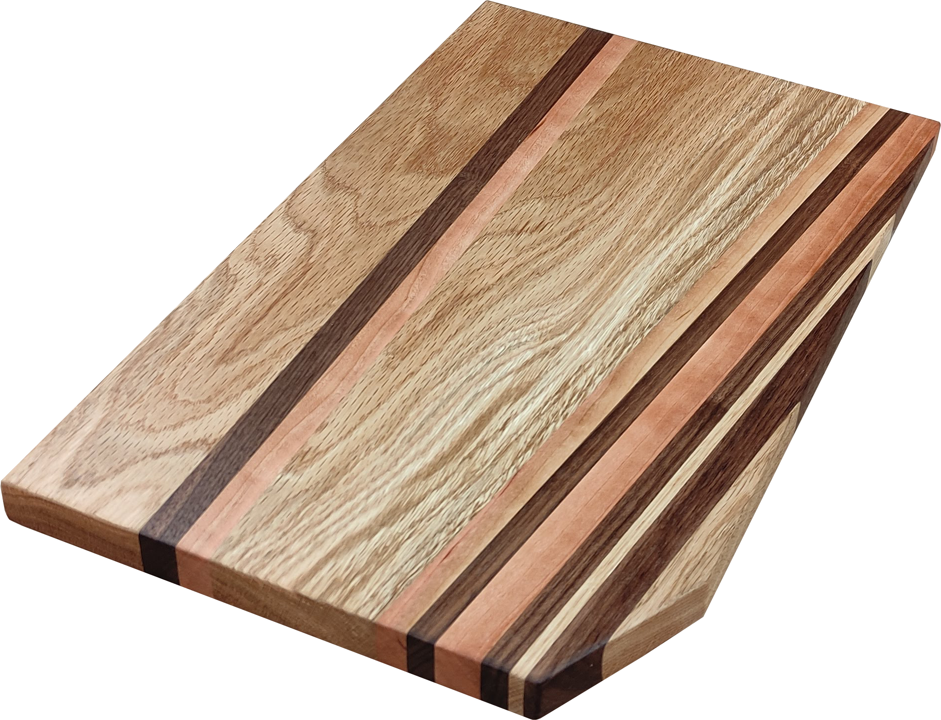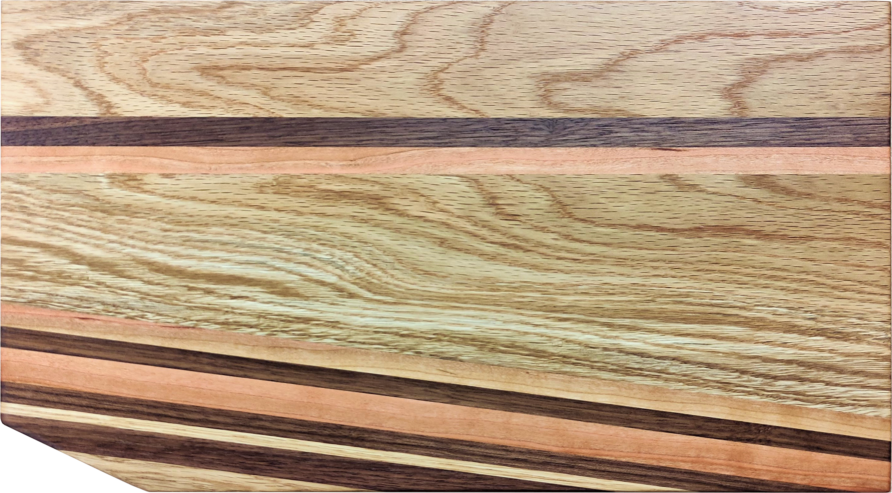 Liimpuidust lõikelaud mis on valmistatud Eesti tammest, Ameerika pähklist ja kirisipuust.